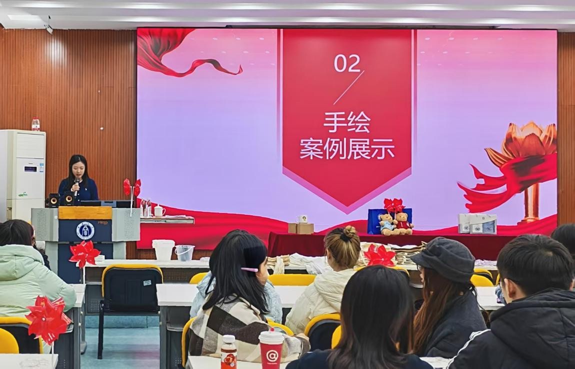 活动伊始,主持人结合革命历史背景,详细阐述了红军挎包的特殊意义,强调本次活动以红色文化传承为核心,旨在通过沉浸式创作让青年学子在实践中感悟革命精神、厚植家国情怀。随后,主持人介绍了活动创作形式与时间安排,展示了5个优秀手绘案例,引导同学们结合个人经历、专业特色来融入设计理念,激发大家的创作灵感与热情。