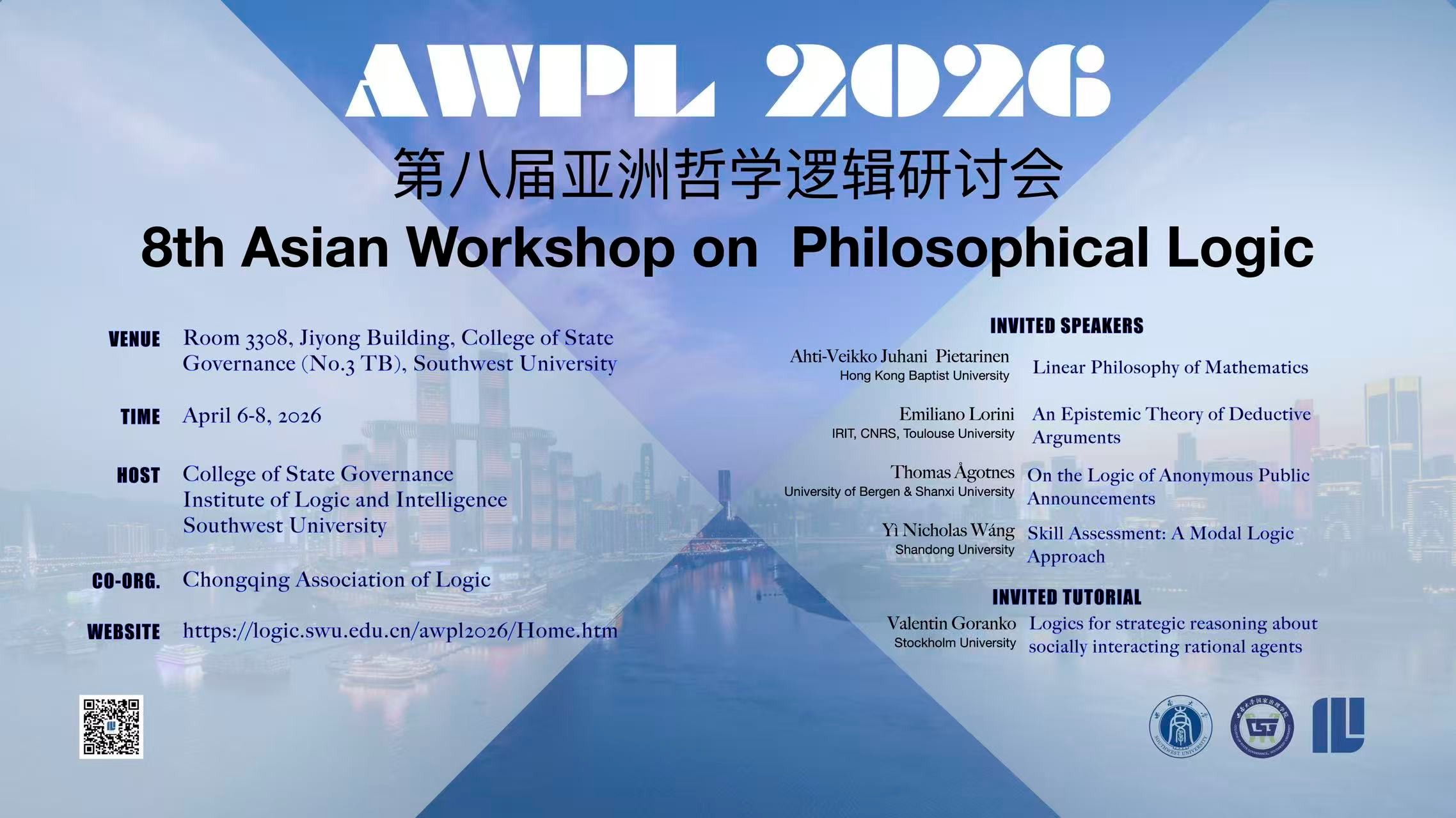 2026年4月6日至8日,第八届亚洲哲学逻辑研讨会(AWPL 2026)在西南大学举行。本次会议由西南大学国家治理学院与西南大学逻辑与智能研究中心共...