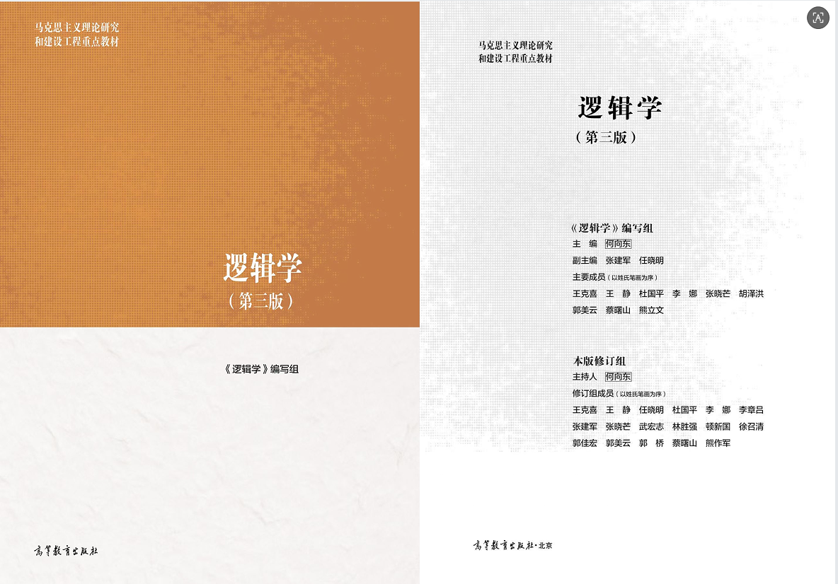 发布时间: 2026-01-12 16:20:40 已阅读:2025年12月25日,由西南大学何向东教授任主编,南京大学张建军教授、四川大学任晓明教授任副主编的“马克思主义理论研究与建设工程重点教材”《逻辑学》(第三版)经国家教材委员会高校哲学社会科学(马工程)专家委员会审核通过,由高等教育出版社出版发行。