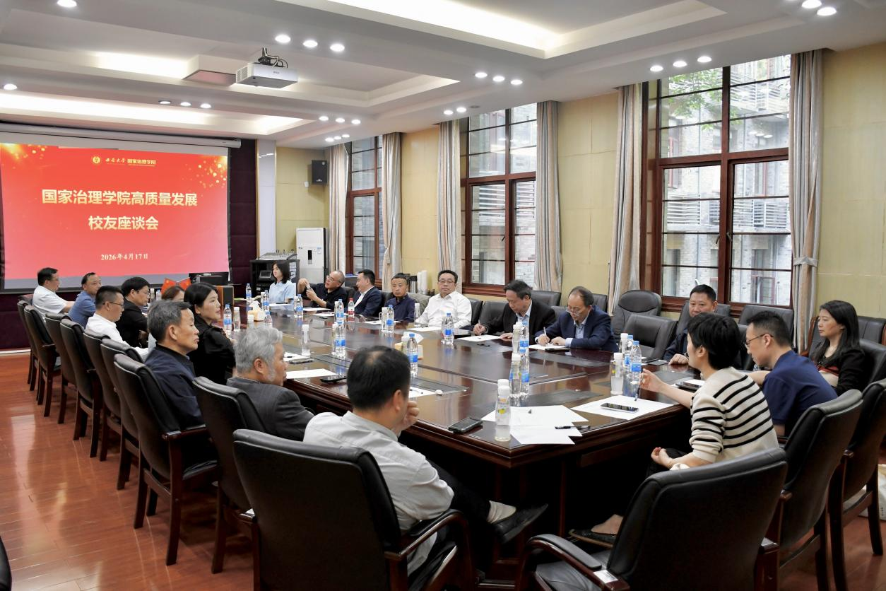 发布时间: 2026-04-18 16:16:36 已阅读:4月17日下午,国家治理学院高质量发展校友座谈会在绩镛楼3201会议室举行。学院班子成员、校友代表、学院教师代表齐聚一堂,共忆求学岁月、共话学院发展、共绘美好蓝图。座谈会由学院党委书记刘勇主持。