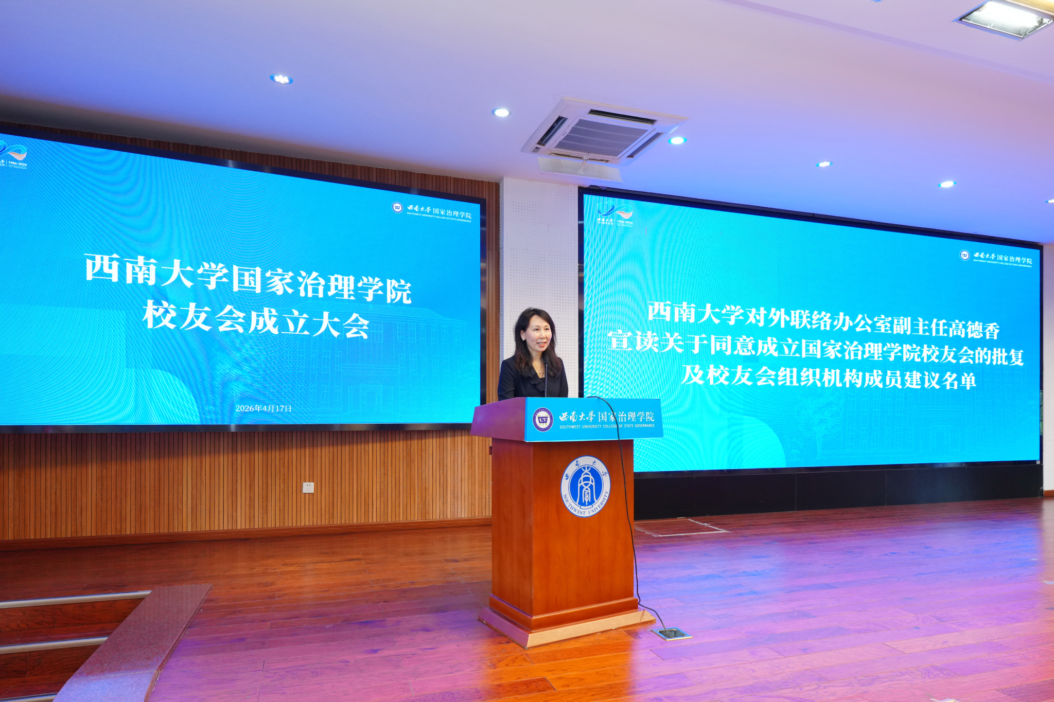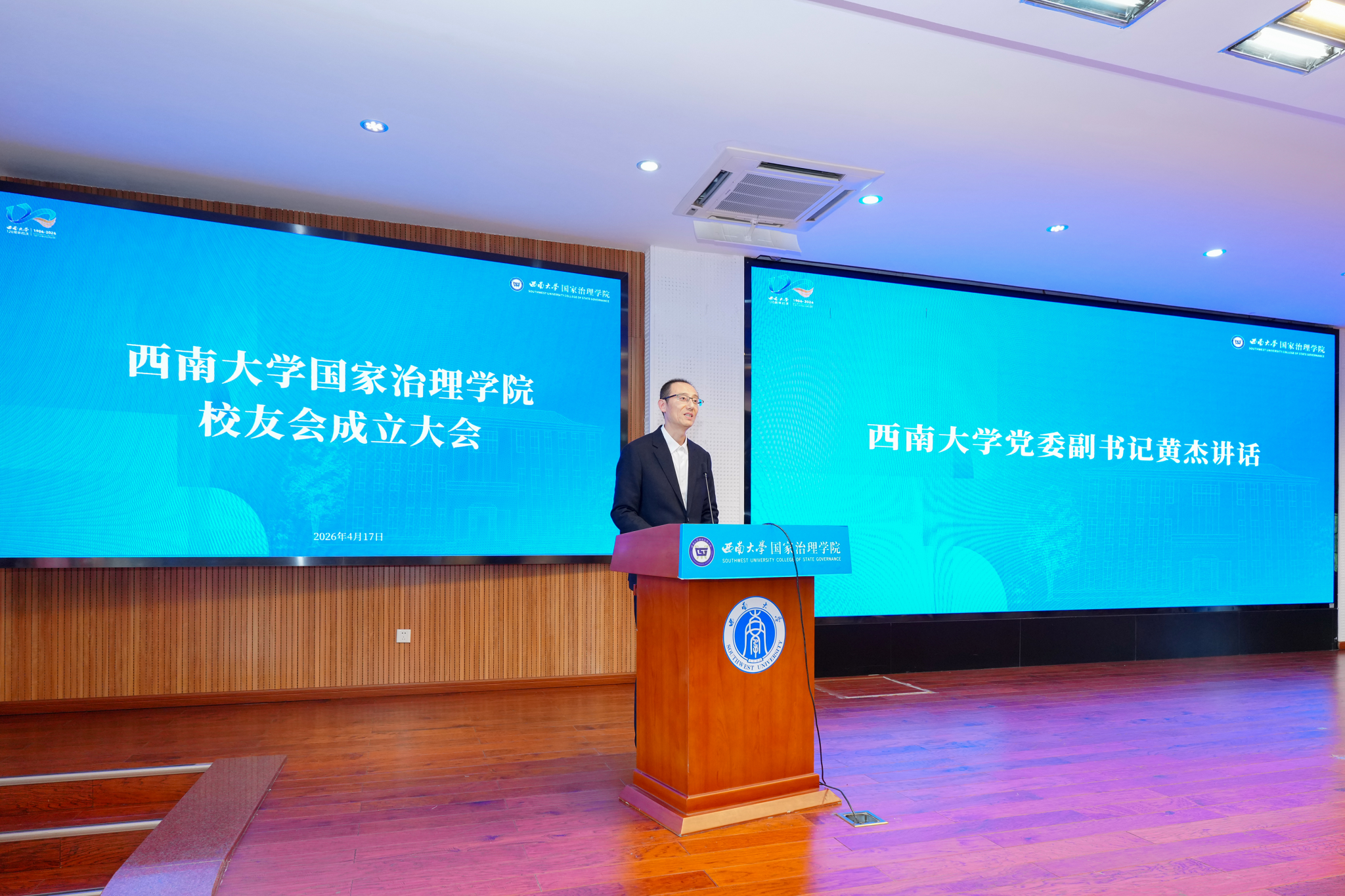 薪火赓续,共赴新程。为共庆学校百廿华诞,凝聚校友力量、赋能学院高质量发展,4月17日下午,西南大学国家治理学院校友会成立大会在绩镛楼505报告厅隆重举行,学校党委副书记黄杰出席并致辞,对外联络办公室副主任高德香、学院领导班子、校友代表及师生代表齐聚共庆校友会成立,共叙同窗情谊,共商发展大计。