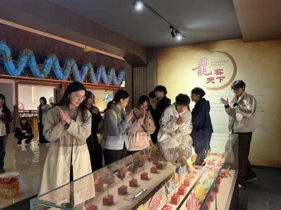 随后,支部党员乘车前往铜梁博物馆参观学习。馆内珍藏的4622件(套)文物中,既有 “铜梁文化” 的远古石器,也有商代青铜方鼎等历史瑰宝,更有享誉海内外的铜梁龙灯艺术展品。在讲解员的带领下,党员们依次参观了四大展厅,从两万年前远古先民的生产生活痕迹,到明清时期的民俗文化瑰宝,再到现代铜梁龙灯在天安门广场庆典上的辉煌瞬间,全方位感受了铜梁地区深厚的历史底蕴与鲜明的文化特色。